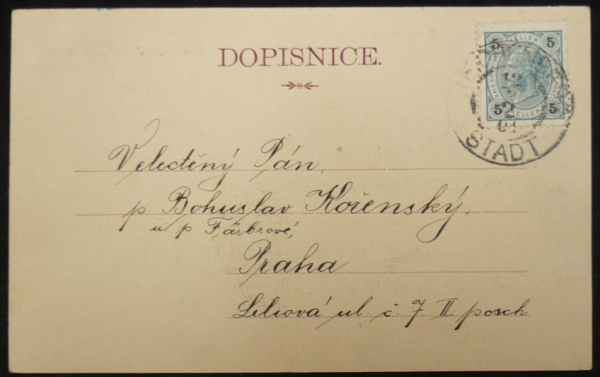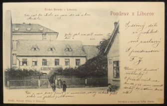 Česká beseda, nákladem Fr. Pitro v Liberci, DVORAK & RULLER, Německý Brod, dlouhá adresa, prošlá, lehce odřené růžky; Q1-2
