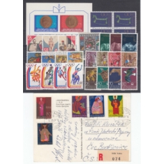 MICHEL 3l.10 + 556-59, 590, 620-22, 644-47, 648 (čtyřblok), 651-54, 662-65 a 954-56, s námětem Dětem, Fauna, Vánoce, Sport, vše lzxusní, k tomu R pohlednice do ČSR se známkami 492-494, 501-502, VADUZ 16.7.1969