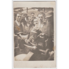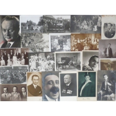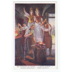 sestava 2 pohlednic zobrazujících pijany piva; Q2 - omačkané růžky