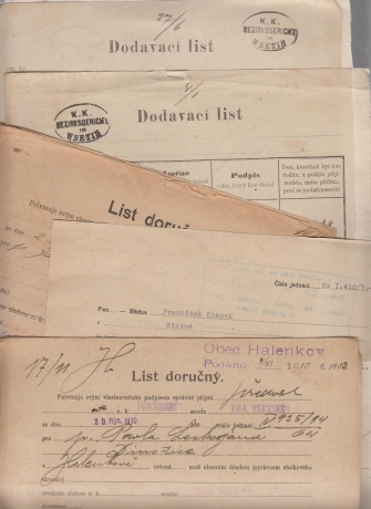 1910 List doručný, sestava 6 celistvostí, okr. Vsetín