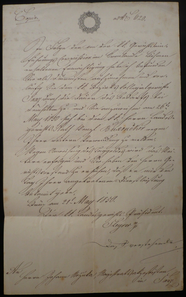 1850 Soudní listina se vzácnou kombinací kolků