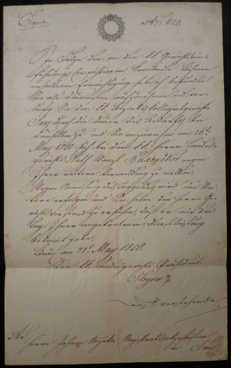 1850 Listina s kolkem 1Kr