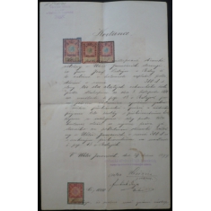 vícenásobná frankatura 1K, 50h, 30h a 8h emise 1898 v záhlaví a 72h emise 1898 v závěru smlouvy, znehodnoceno přepisem a razítkem; dekorativní
