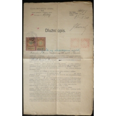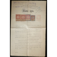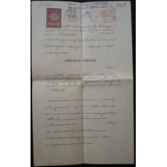 kolek 1K emise 1898 v záhlaví a 72h emise 1898 v závěru smlouvy, znehodnoceno přepisem a razítkem, hezké