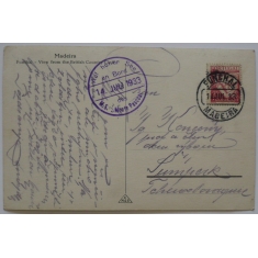 za války zrekvírovaný, eskortní dvoukomínový parník, pohlednice, kulaté razítko s datem 14.7.1933, podací razítko FUNCHAL/ MADEIRA 14.7.33; velmi hezké otisky, zajímavé z hlediska válečných událostí
