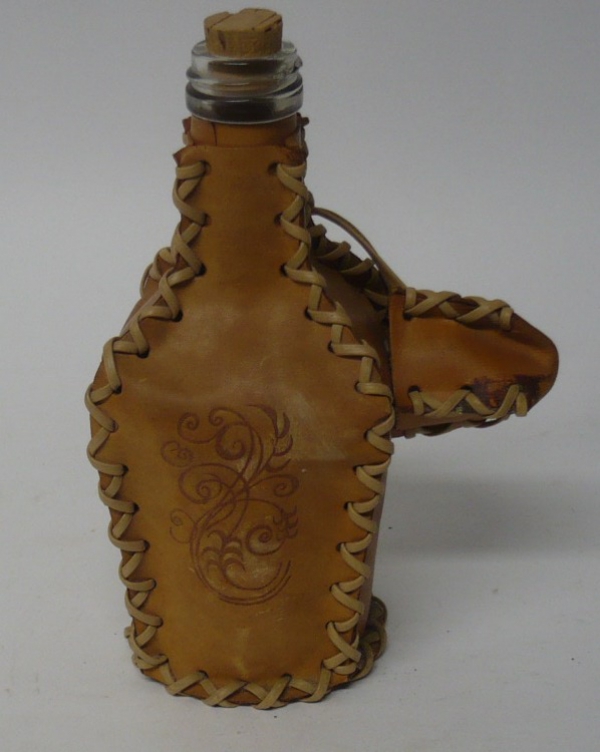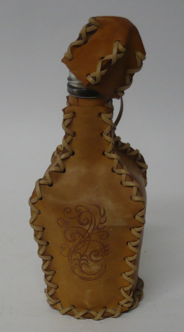 Malá láhev v koženém obalu