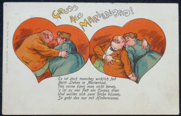 žertovná pohlednice, srdíčka, vydal Ottmar Zieher, prošlá, dlouhá adresa, Q2