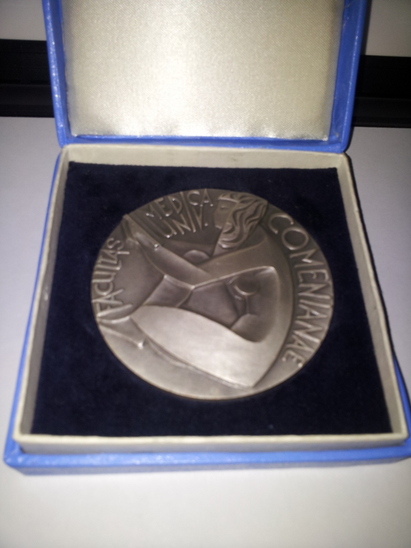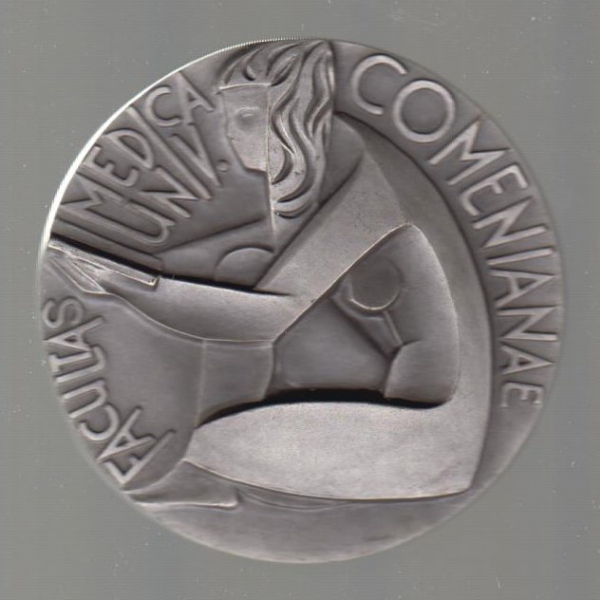oboustranná (stříbrná) medaile 70mm Univerzity Komenského v Bratislavě, původní etue. Autor : Pekár Ferdinand