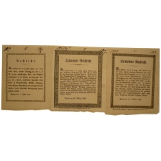 sestava 3 oznámení o dražbě majetku, Brno, 1817, 1839 a 1843; luxusní stav