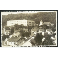 fotopohlednice, pohled přes střechy domů, prošlá, stržená známka, okrasný okraj, Q2