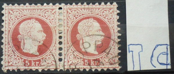 1867 MICHEL 37, VI. emise 5Kr červená