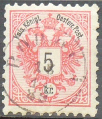 1883 MICHEL 46, Dvojhlavá orlice 5Kr červená