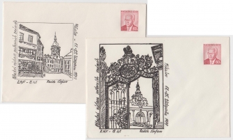 sestava 2 obálek s přitištěnými známkami s různými propagačními přítisky