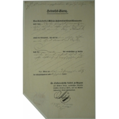 historická listina, oddací list šlechtice a příslušníka armády, suchá pečeť; bezvadné
