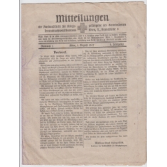 Mitteilungen der Auskunftsstelle für Kriegsgefangene, Wien, první ročník, 8stránková tiskovina