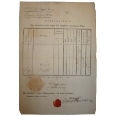 tištěný úmrtní list na jméno Václav Nejezchleb, který zemřel v Trevíru na úplavici