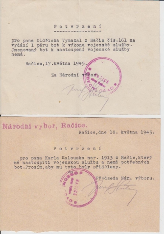 1945 Militaria, sestava 2 potvrzení pro fasování bot