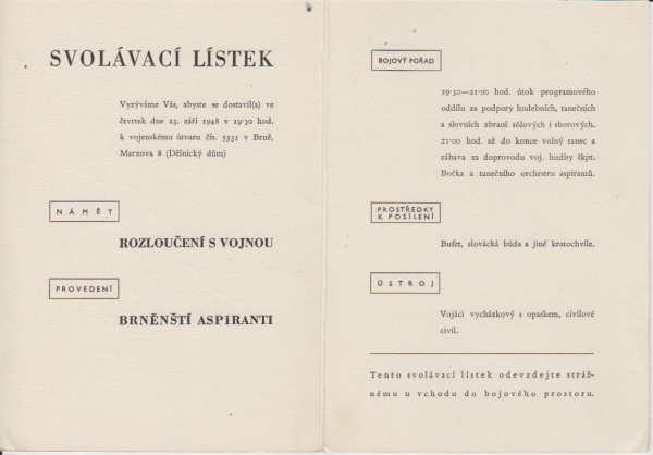 1948 Militaria, Svolávací lístek Brno