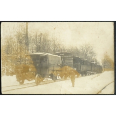 vojenský vlak, automobil na kolejích, vojáci; nepoužitá, Q3, oxidace