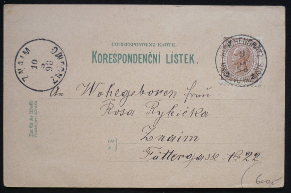 litografická koláž, radnice, hrad, klášter, vydal Schwidernoch, Wien, prošlá, dlouhá adresa, Q3