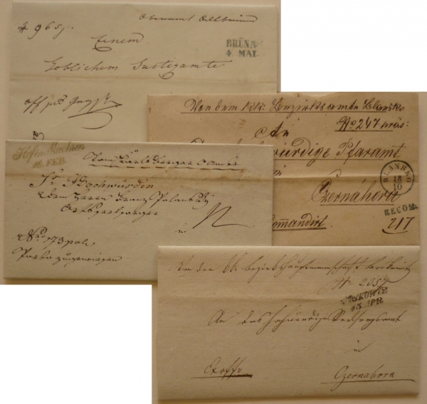 mj. BLANSKO, BOSKOWITZ, BRÜNN, DVORCE U JIHLAVY [HÖFEN MAEHREN], suché pečetě, hezké