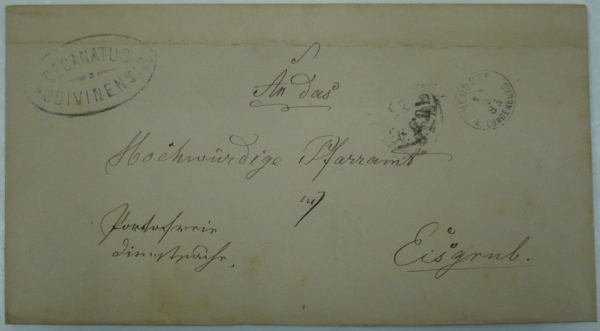 skládaný přebal dopisu do Lednice s krásným náprstkovým razítkem NEUDORF/ b. LUNDENGURG 13/2/85, vzadu razítka BŘECLAV a LEDNICE; hezké