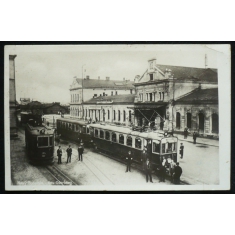 fotopohlednice, nádraží, tramvaje, prošlá, Q3 - poškozený roh