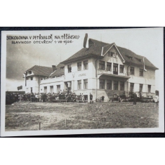 fotopohlednice, sokolovna, slavnost otevření, nepoužitá, Q1