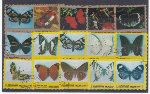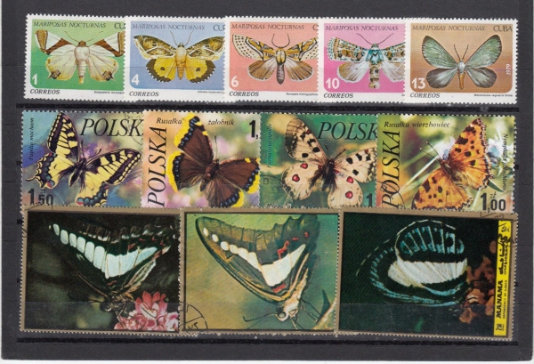 Motýli, sestava 94 známek na 4 destičkách