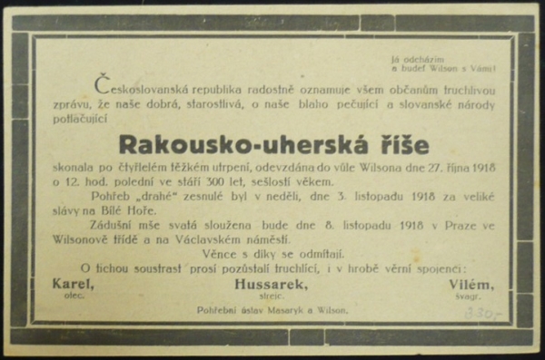 Úmrtní oznámení skonu Rakouska-Uherska