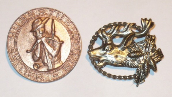 Myslivost, sestava 2 odznaků (mj. Sellier & Bellot)