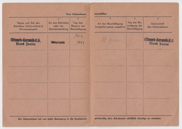 Náhradní průkaz za pracovní knížku (Ersatzkarte)