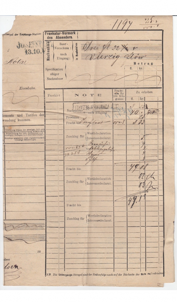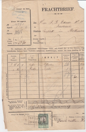 Nákladní list do Krakova, kolek 5kr emise 1879