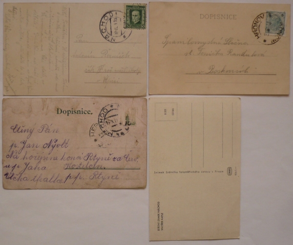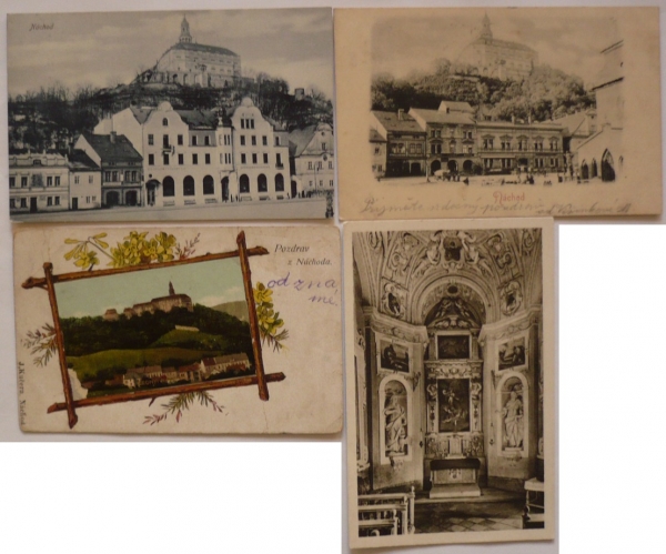 sestava 4 pohlednic, 1x zlomená - nepočítáno