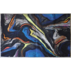 netkaná tapiserie, originál art-protis s názvem Proudění, rozměr 90cm x 145cm; originál z roku 1974 od Bohumila Vrzala (1940-2004) a Marcely Vrzalové i s podpisy; vytvořeno v ateliéru Vlněna na Přízově ul.; jiný originál neexistuje; bezvadná kvalita (sklady na fotografii po složení textilie)
