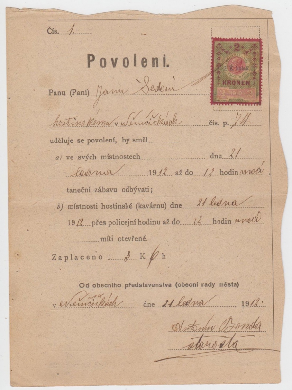 potvrzení o zaplacení poplatku židovskou obcí v Lednici