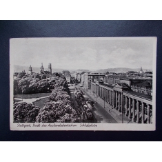 1944 Německo Říše Stuttgart totální nasazení text zámek náměstí tramvaj doprava filatelie