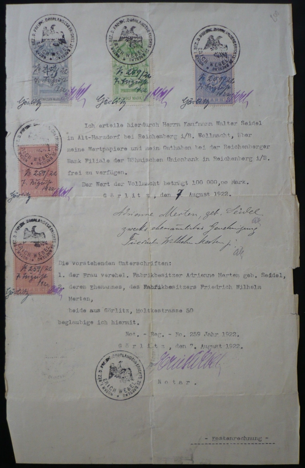 čtyřbarevná frankatura 6 pruských kolků, jeden kolek vzadu; velmi dekorativní