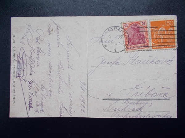 1922 Německo Říše Hamburg přístav výletní loď filatelie