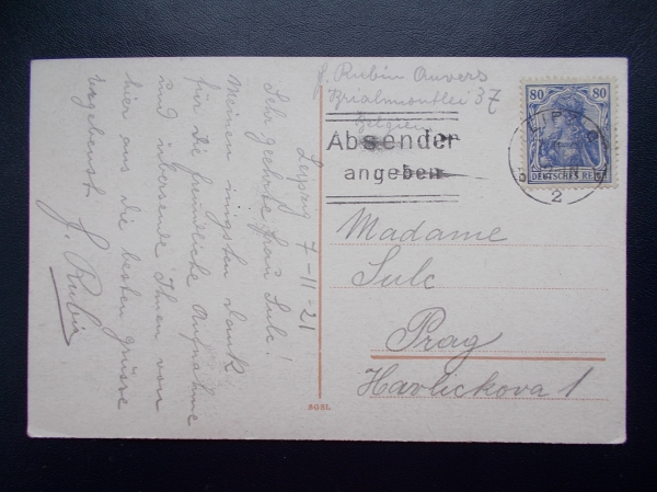 1921 Německo Říše Leipzig Lipsko Johanův park vodotrysk fontána gejzír filatelie