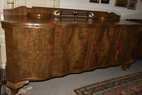 mimořádně zajímavý kus; drobné poškození - 2 vrypy v horní části, polámané kryty klíčových dírek (viz foto)