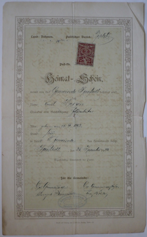 domovský list obce Nové Město (Moldava), dnes osada s 30 obyvateli; poškozený okraj