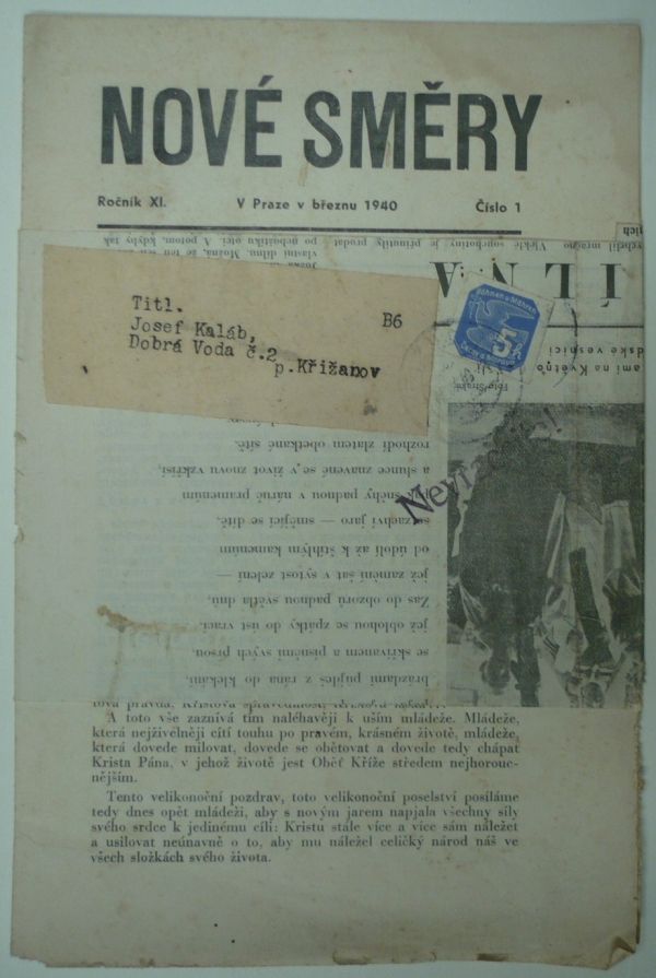 1940 Novinová známka na časopise Nové směry