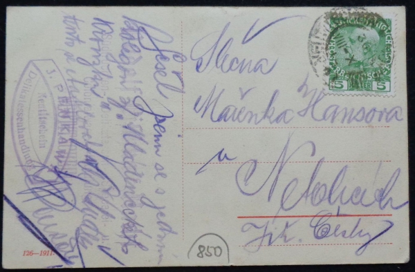 koláž "čtyřlístek", litografie, prošlá, dlouhá adresa, Q2