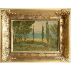 olej na kartónu, rám 41x31cm, výřez 28x19cm