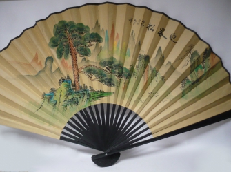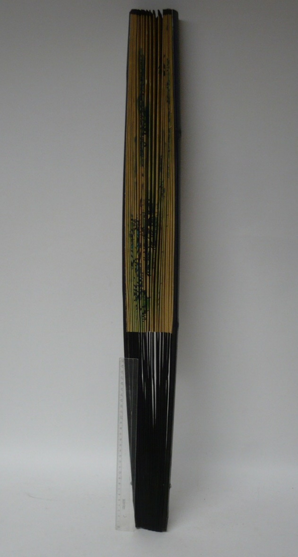 Obří vějíř, dřevo a papír, délka ve složeném stavu 90 cm