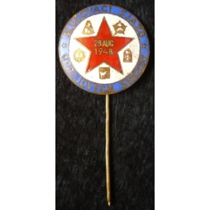 na Masarykově okruhu, Brno 25.9.1949; automobil a symbol komunistické pětiletky; zajímavé