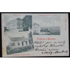 fotopohlednice, budova školy, prošlá, dlouhá adresa, Q3 - vpich