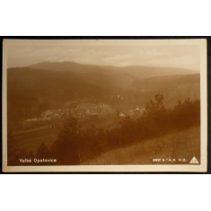 Velké Opatovice, fotopohlednice, celkový pohled, prošlá, stržená známka, Q2