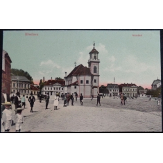 litografická koláž, náměstí, prošlá, stržená známka, dlouhá adresa, Q3 - odřená